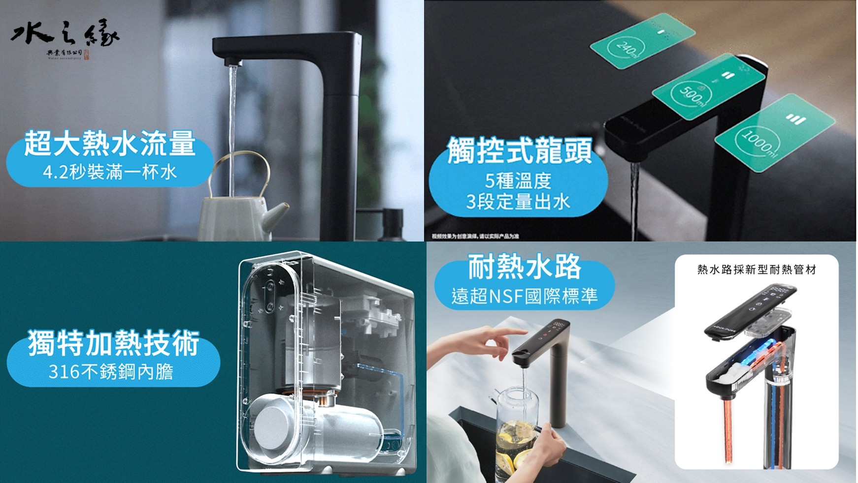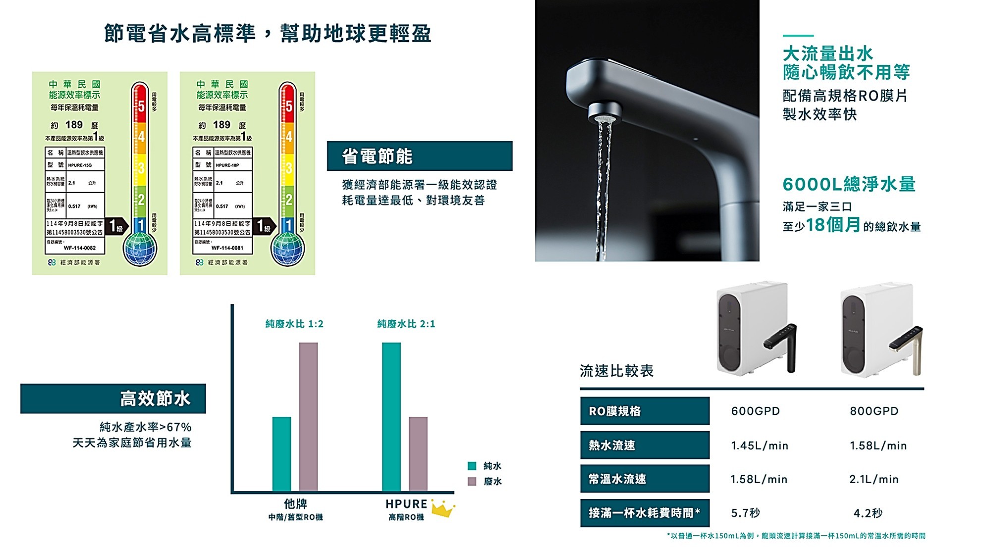 • 配備高規格RO膜片,製水效率 高,出水速度快