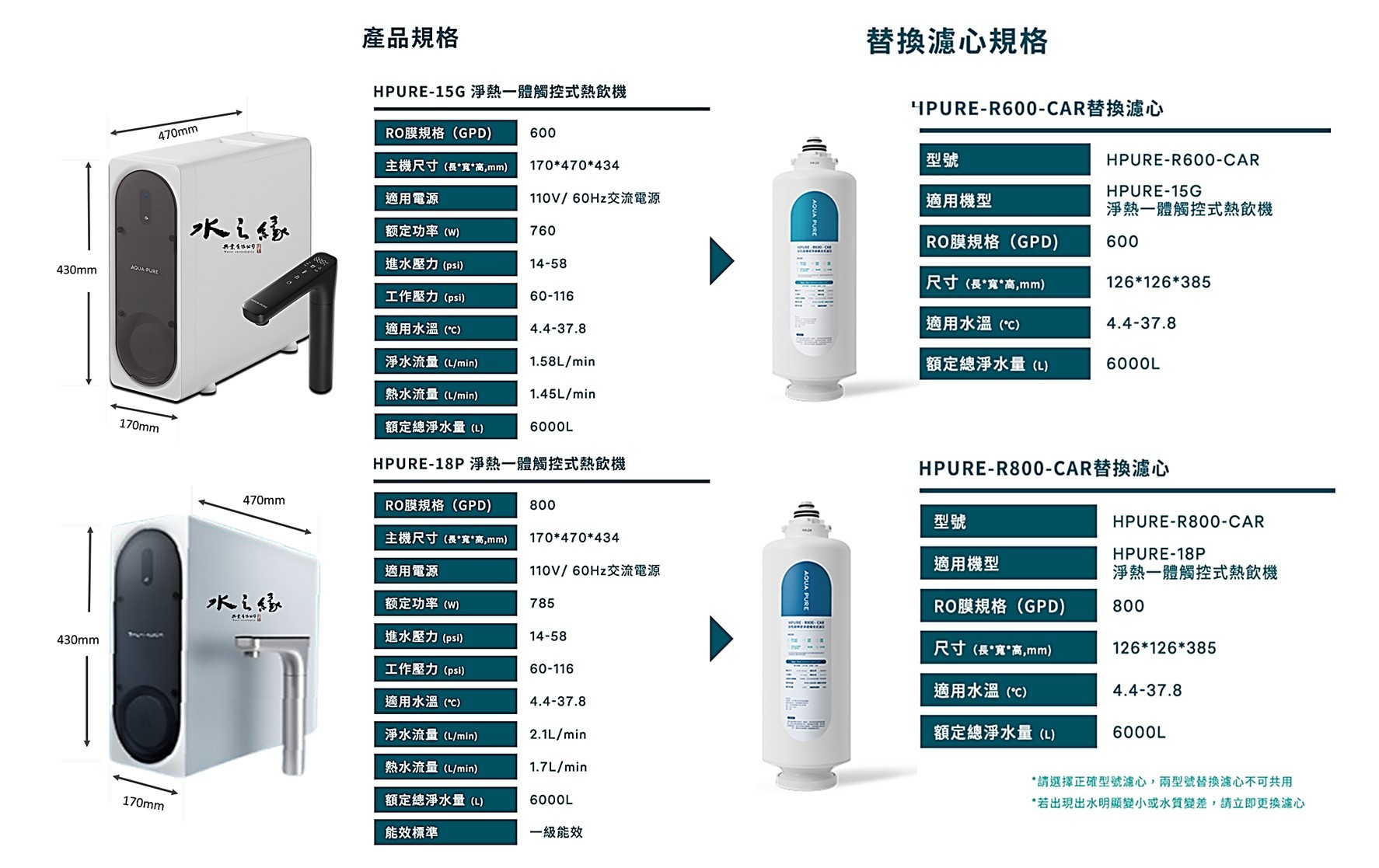 【Aqua-Pure HPURE-15G 產品規格及濾心介紹】