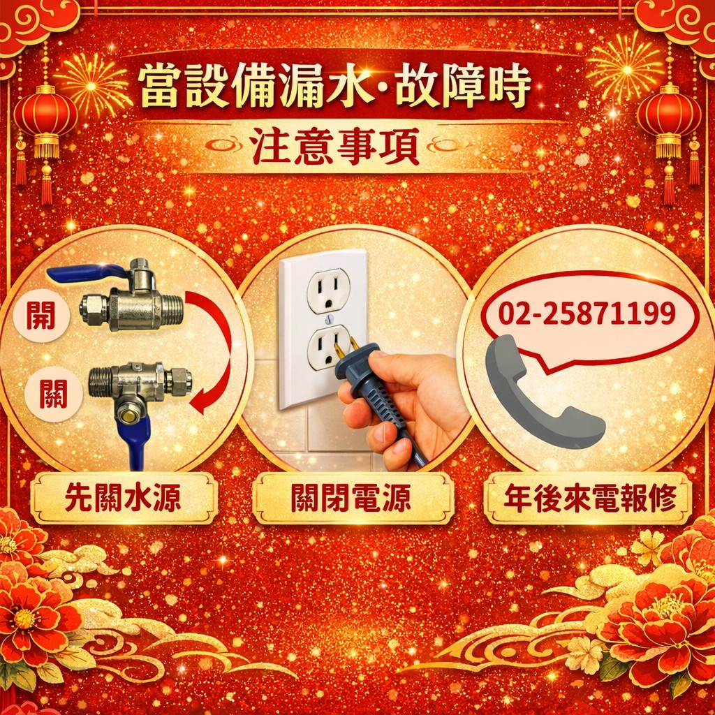【新春休假公告】 為了儲備更多能量,水之緣全體將於 115年2月14日 起進行「補水充電」休假,並於 115年2月23日 恢復營運,繼續為您提供最專業熱誠的服務。